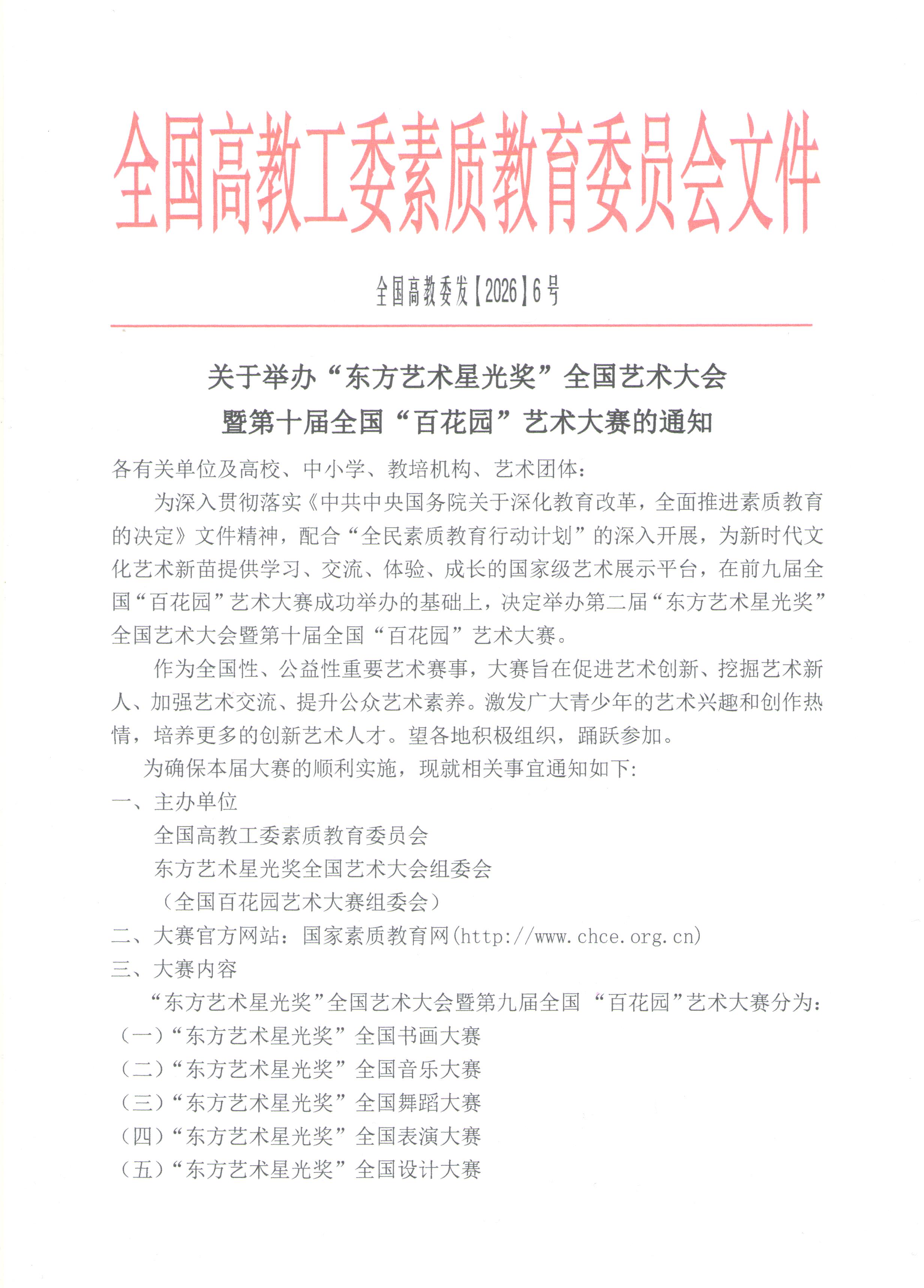 文章标题:关于举办“东方艺术星光奖”全国艺术大会暨第十届全国“百花园”艺术大赛的通知